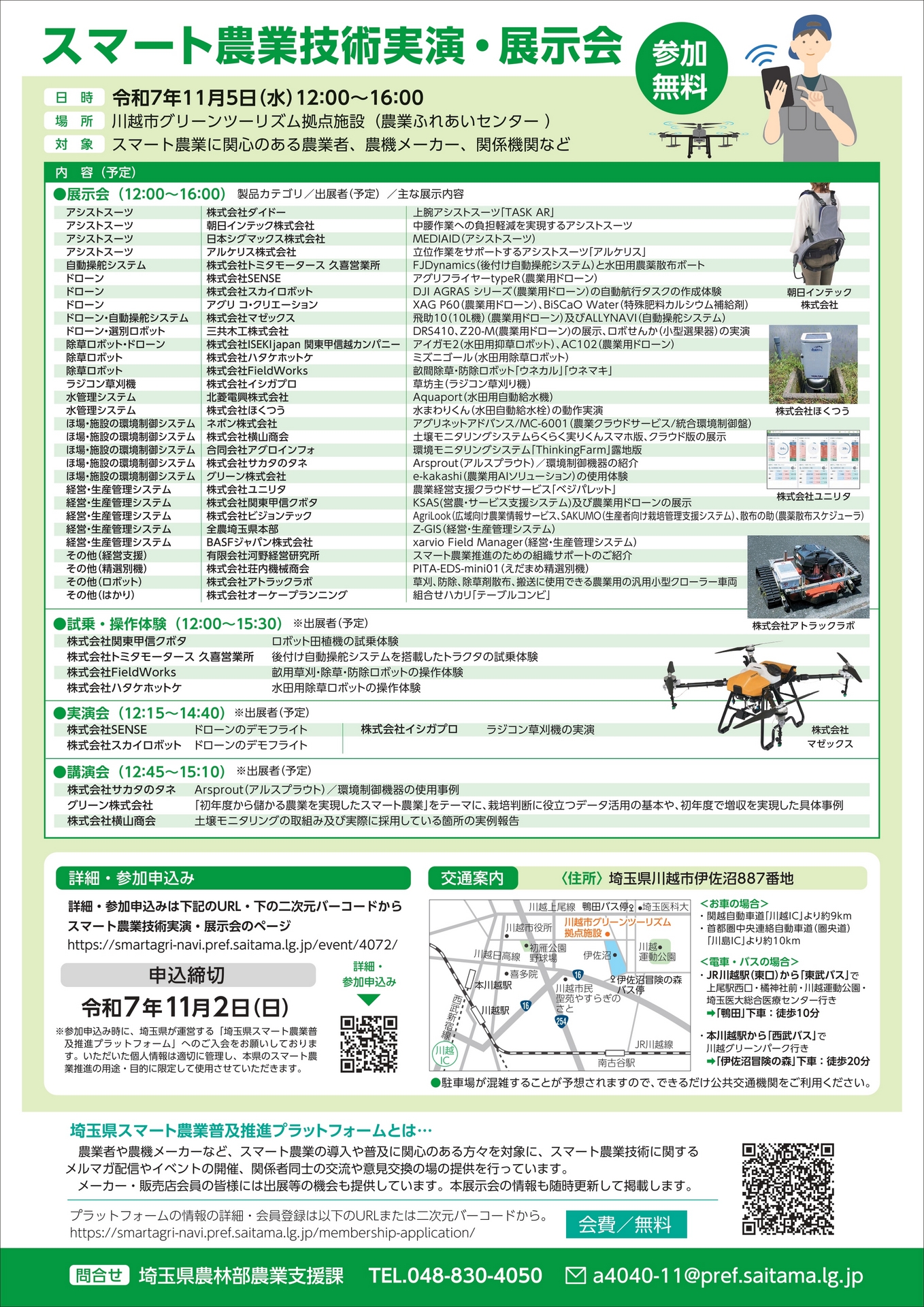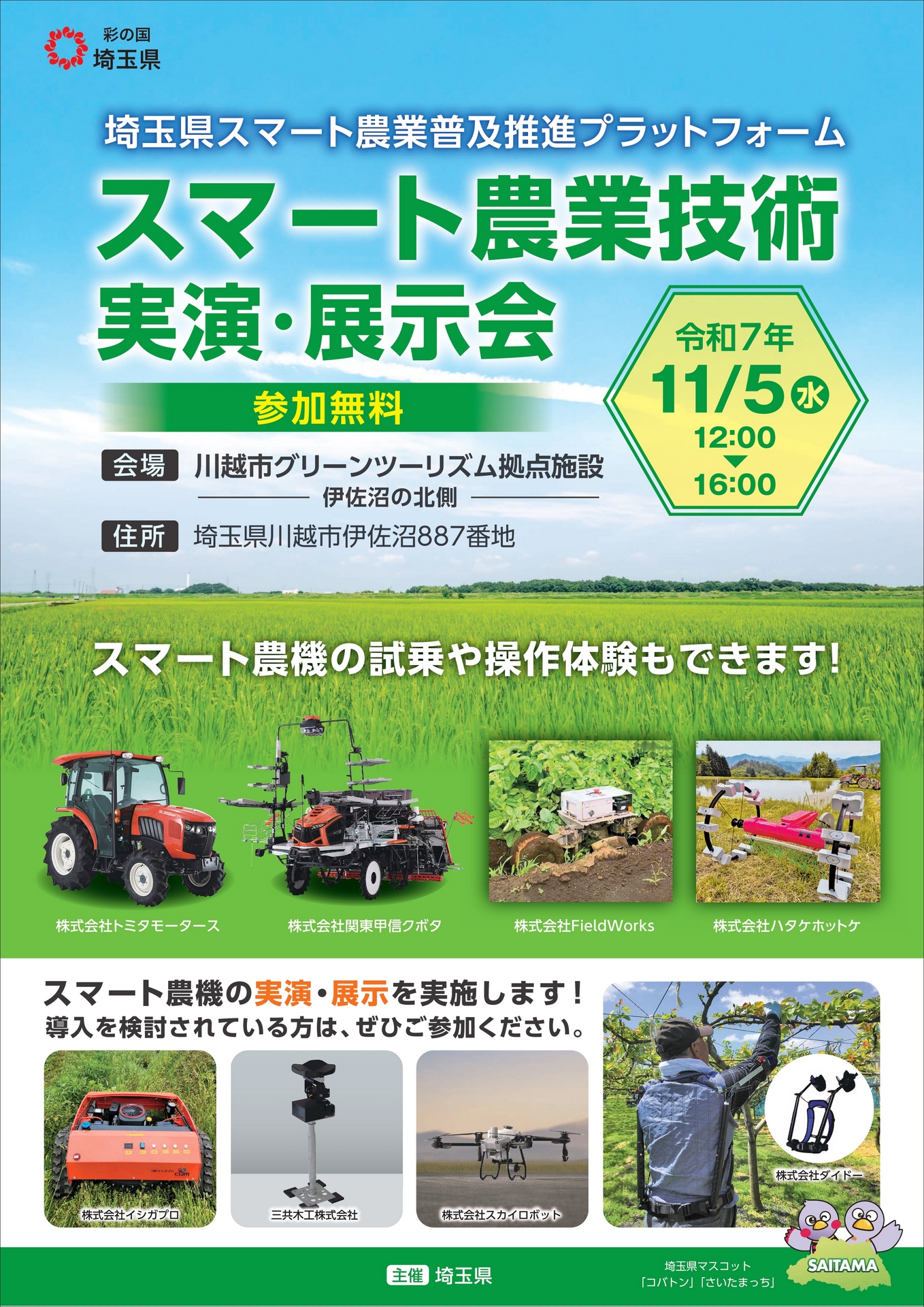 川越市と連携し、「スマート農業技術実演・展示会」を開催します。
